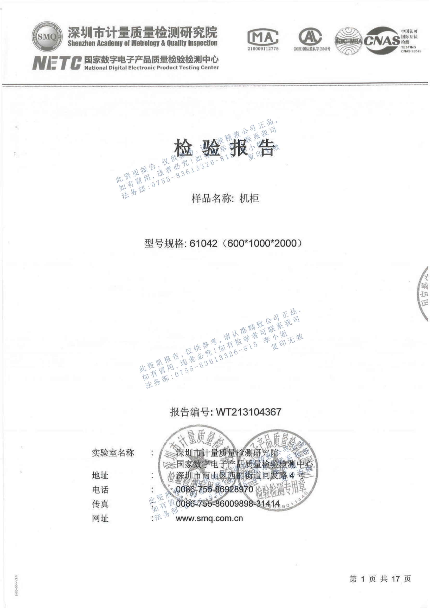 精致森藍抗震機柜檢測報告--為您投標添磚加瓦