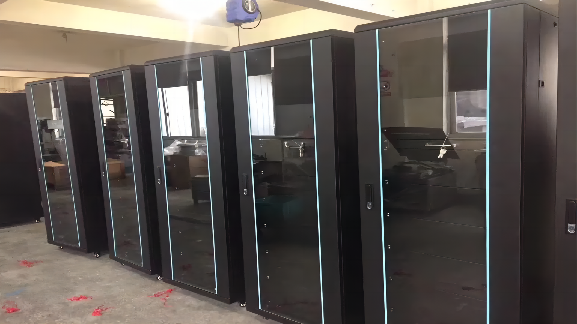 網(wǎng)絡(luò)機(jī)柜是一種由框架和蓋板組成的矩形機(jī)柜,可以在機(jī)柜中安裝交換機(jī)、光纖適配器、光纖配線架等設(shè)備。它具有電磁隔離、噪聲隔離、通風(fēng)散熱、抗振動(dòng)、耐腐蝕等性能。,可以保證設(shè)備穩(wěn)定可靠的工作,以及安裝、維護(hù)和管理的便利性和安全性。廣泛應(yīng)用于網(wǎng)絡(luò)綜合布線、計(jì)算機(jī)房、廣播電視等領(lǐng)域。